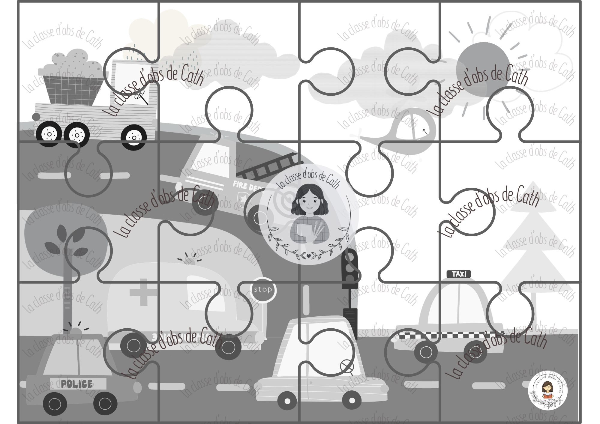 Imprimer sur papier épais et plastifier pour un usage durable. Découper les pièces avec soin et les ranger par puzzle dans une pochette ou une boîte individuelle pour faciliter l’utilisation autonome.