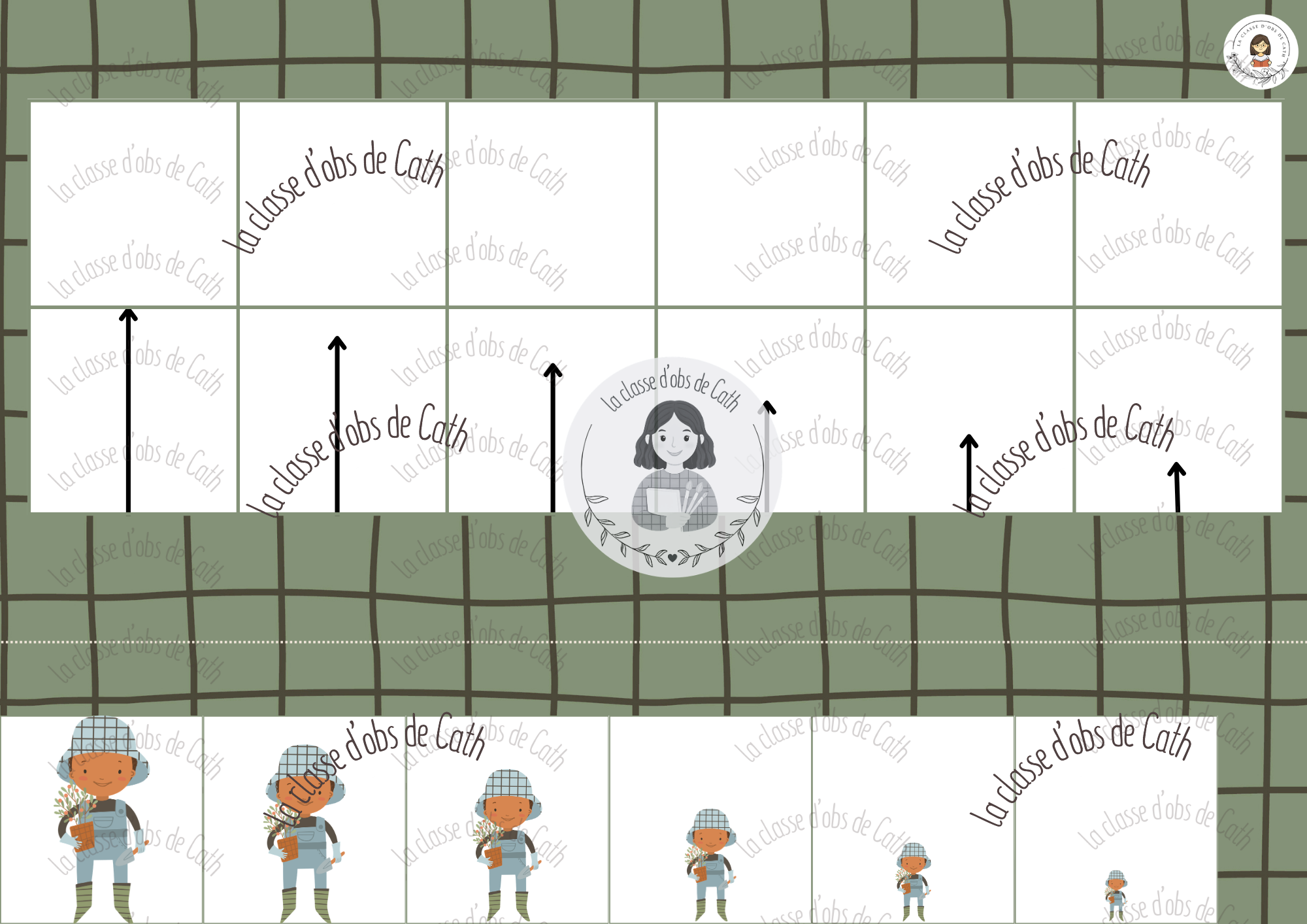10 ateliers de sériation croissants-décroissants sur le thème « Au jardin » pour observer, comparer et ranger les éléments du plus petit au plus grand, ou du plus grand au plus petit. Un support ludique et structuré qui aide l’enfant à développer son sens de l’observation et sa compréhension des relations de grandeur à partir de modèles visuels variés.