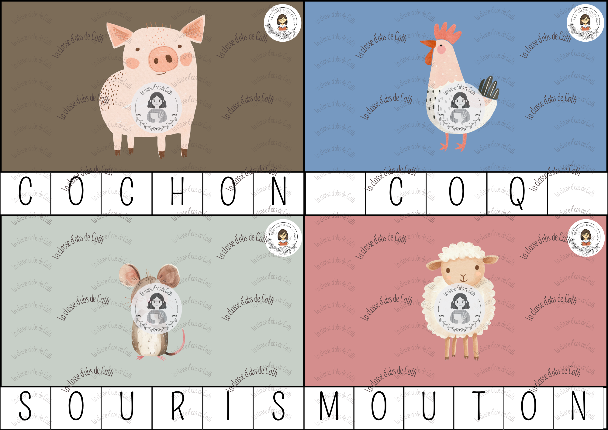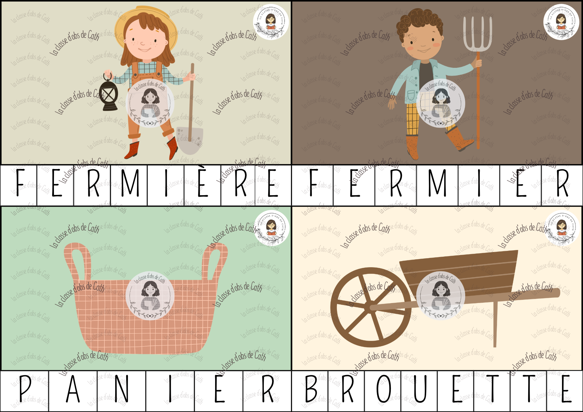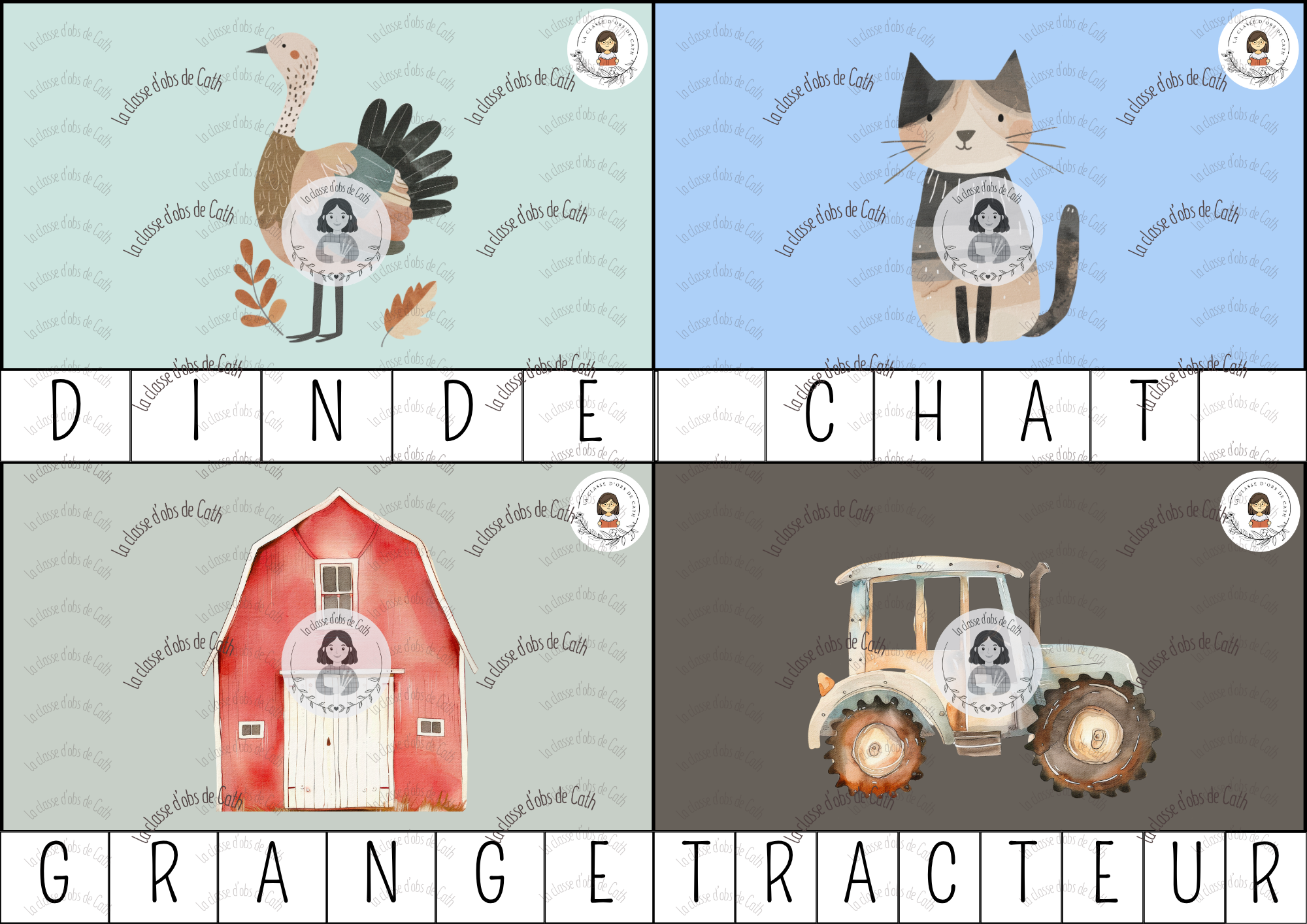 Cartes à pince sur le thème « La Fermw » pour reconstituer chaque mot lettre par lettre en pinçant les bonnes lettres au bon endroit. Un support ludique et concret qui permet à l’enfant de manipuler les lettres, d’observer attentivement l’ordre des graphèmes et de renforcer la lecture débutante à partir d’un matériel attrayant et motivant.