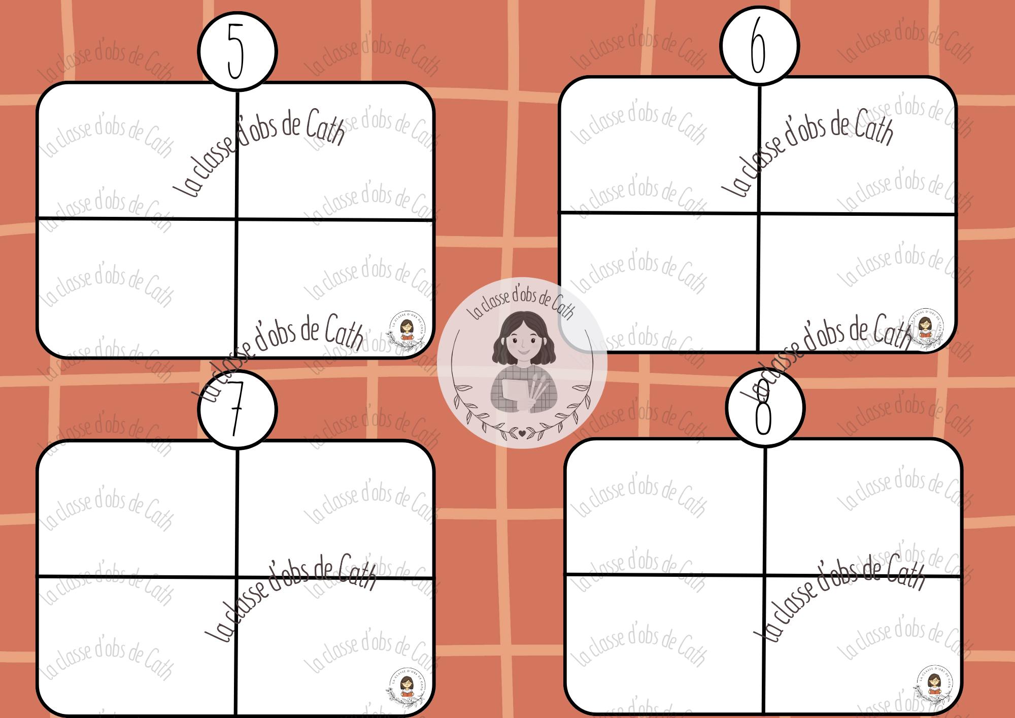 Imprimer sur papier épais et plastifier pour un usage durable. L’ajout de velcro permet de transformer les cartes en support interactif.
