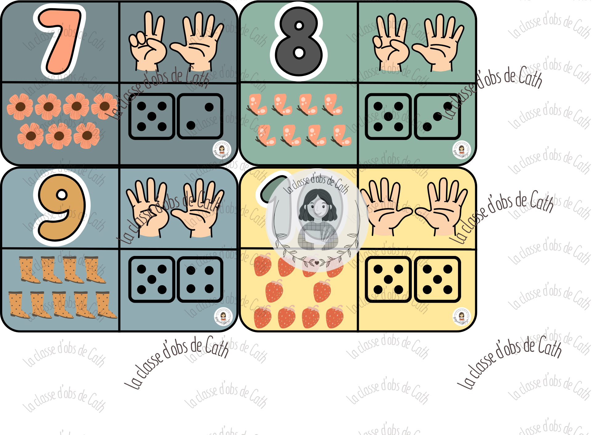 Dénombrer une collection, associer chiffre et quantité, reconnaître les constellations, représenter les nombres avec les doigts et structurer les premières bases du nombre.