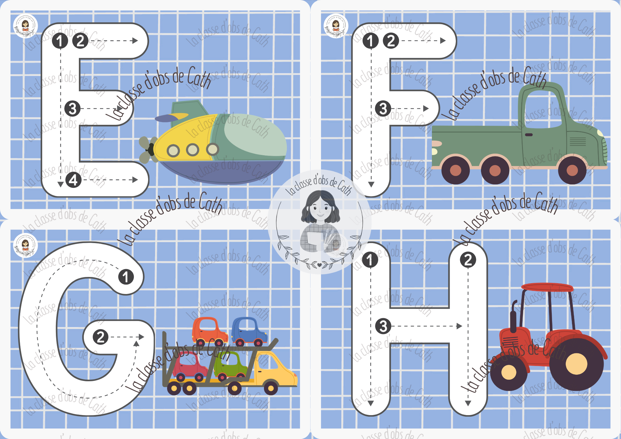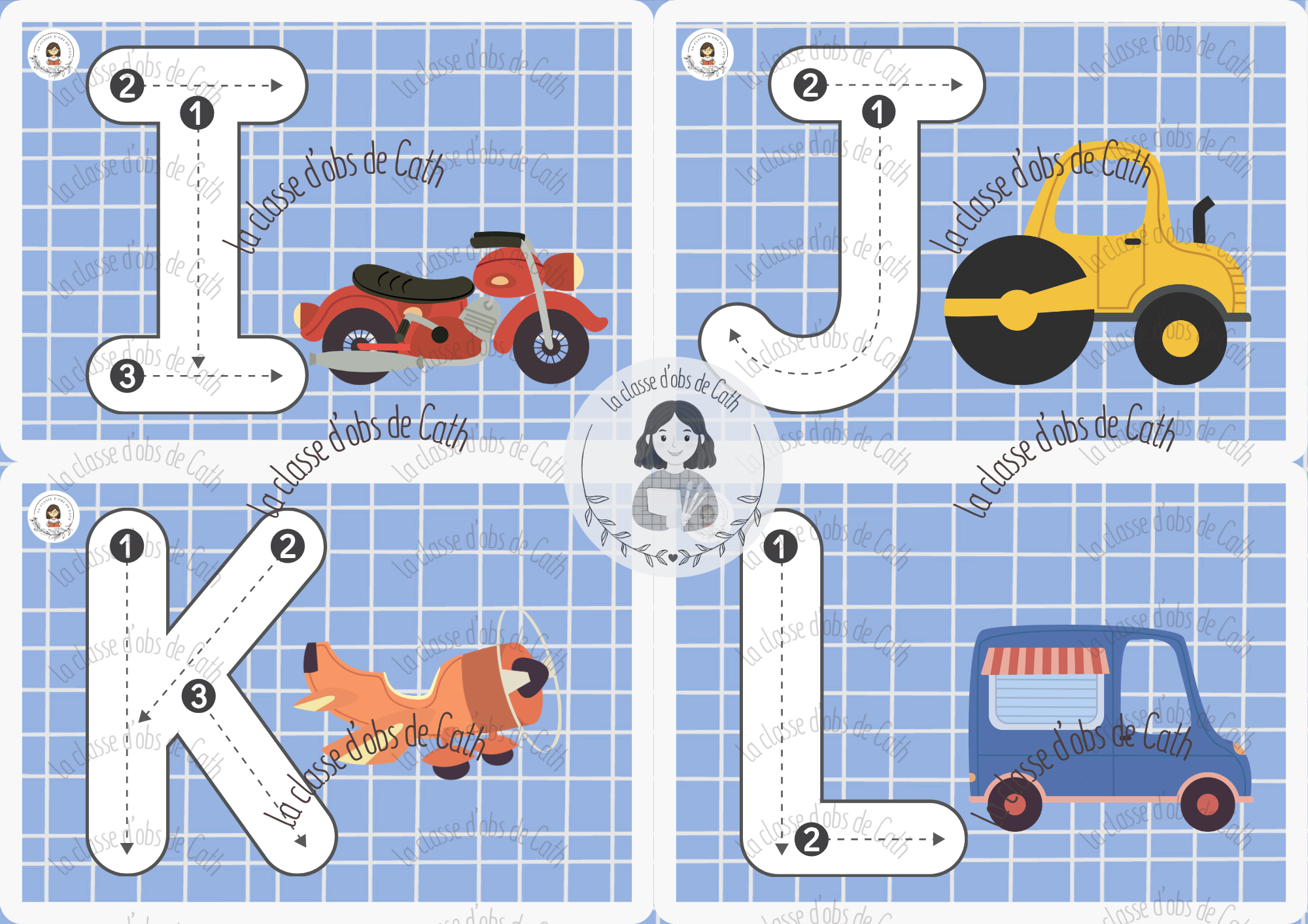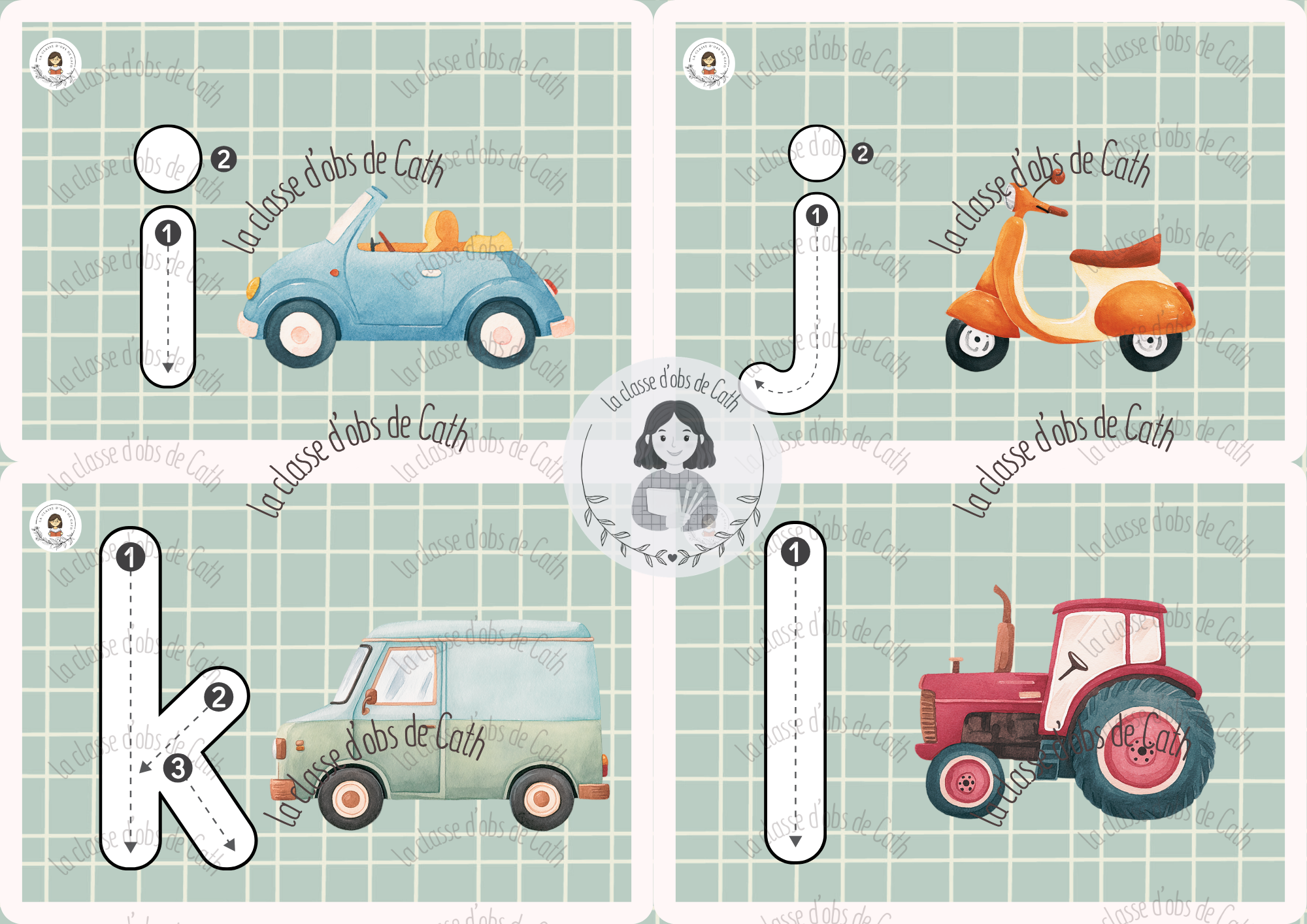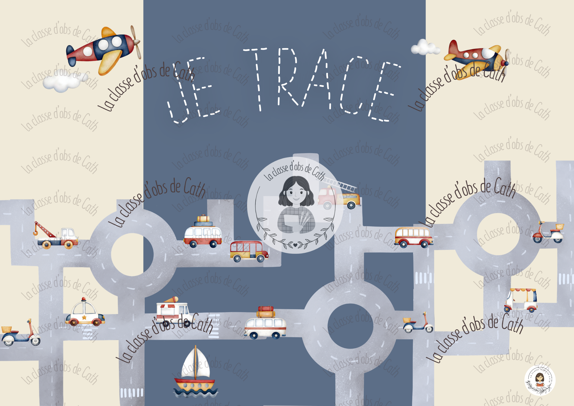 Dossier “Je trace” sur le thème des véhicules pour s’exercer au graphisme, aux gestes de base et au tracé des lettres dans un support visuel clair, ludique et progressif.