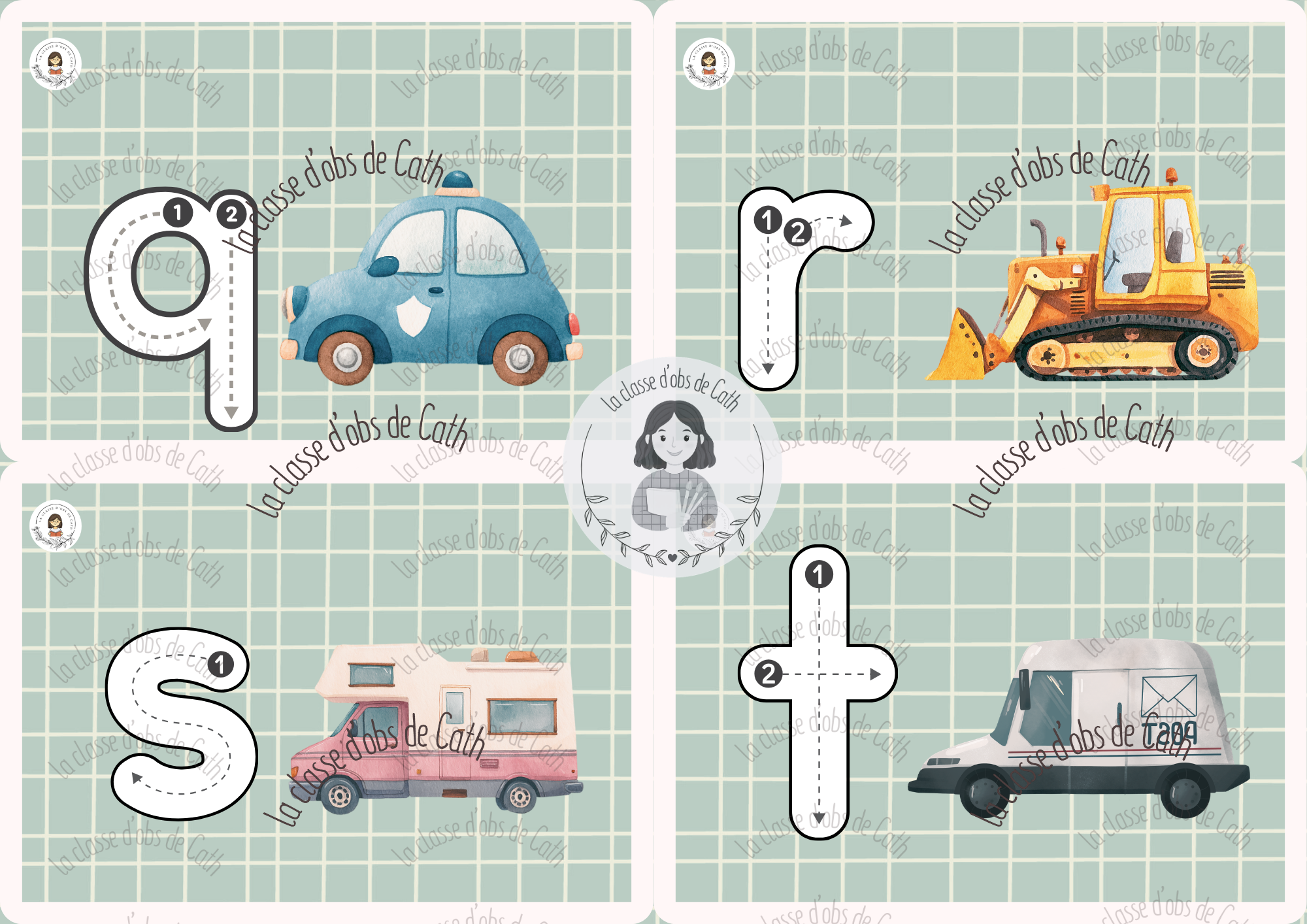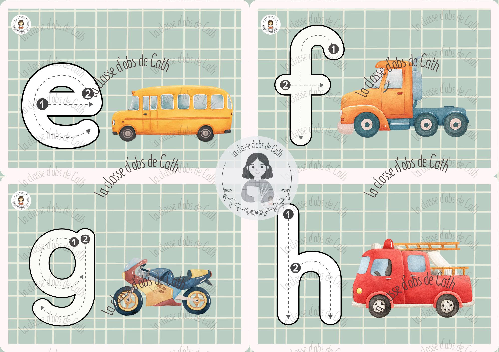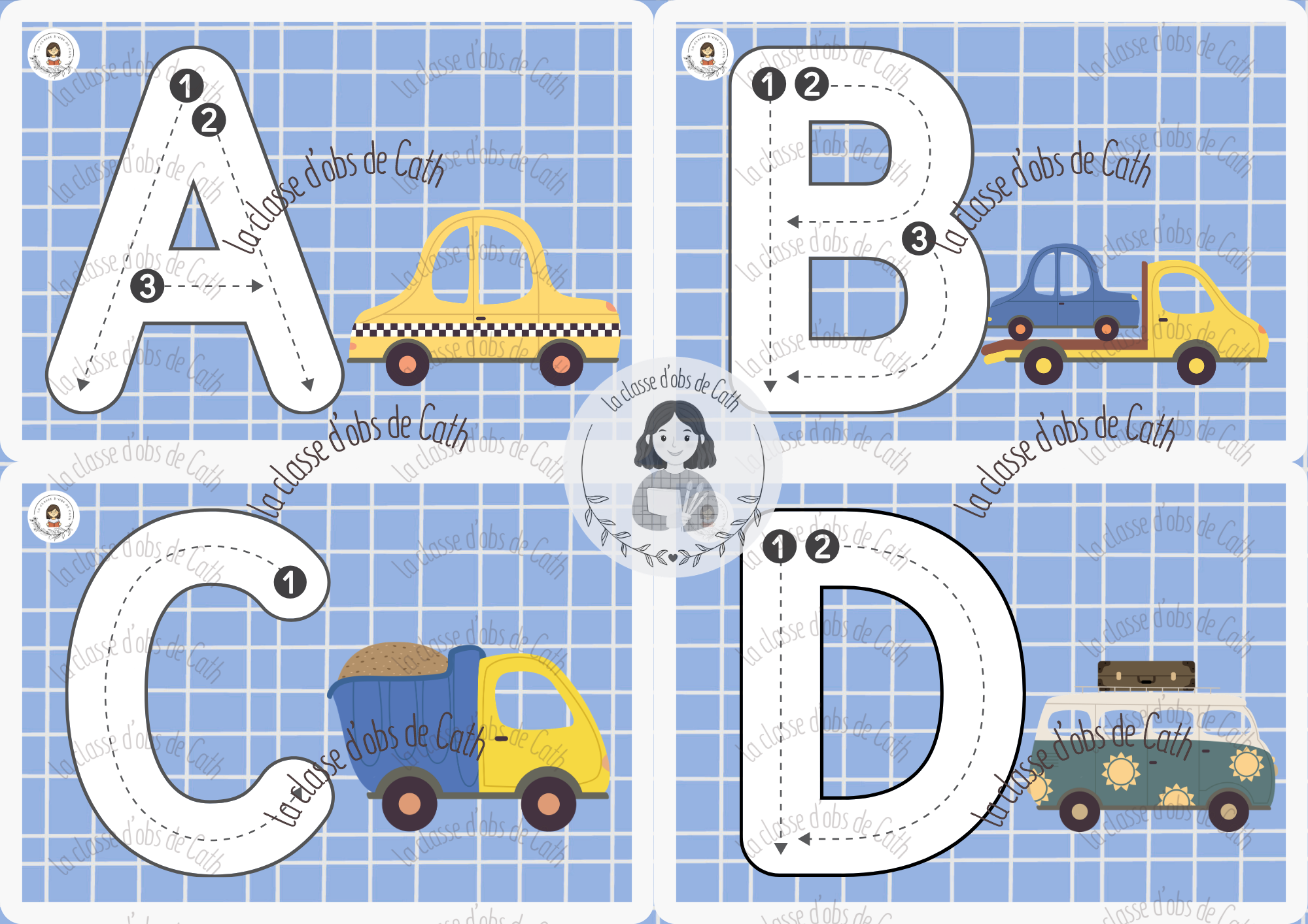 Dossier “Je trace” sur le thème des véhicules pour s’exercer au graphisme, aux gestes de base et au tracé des lettres dans un support visuel clair, ludique et progressif.