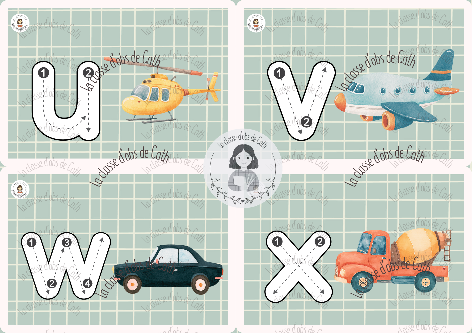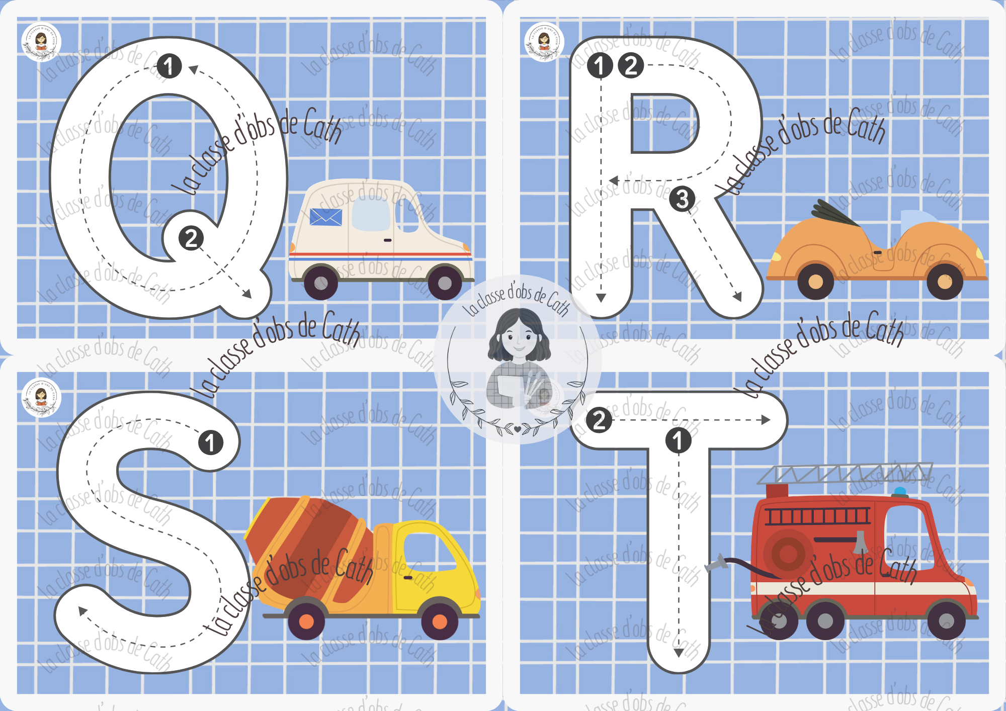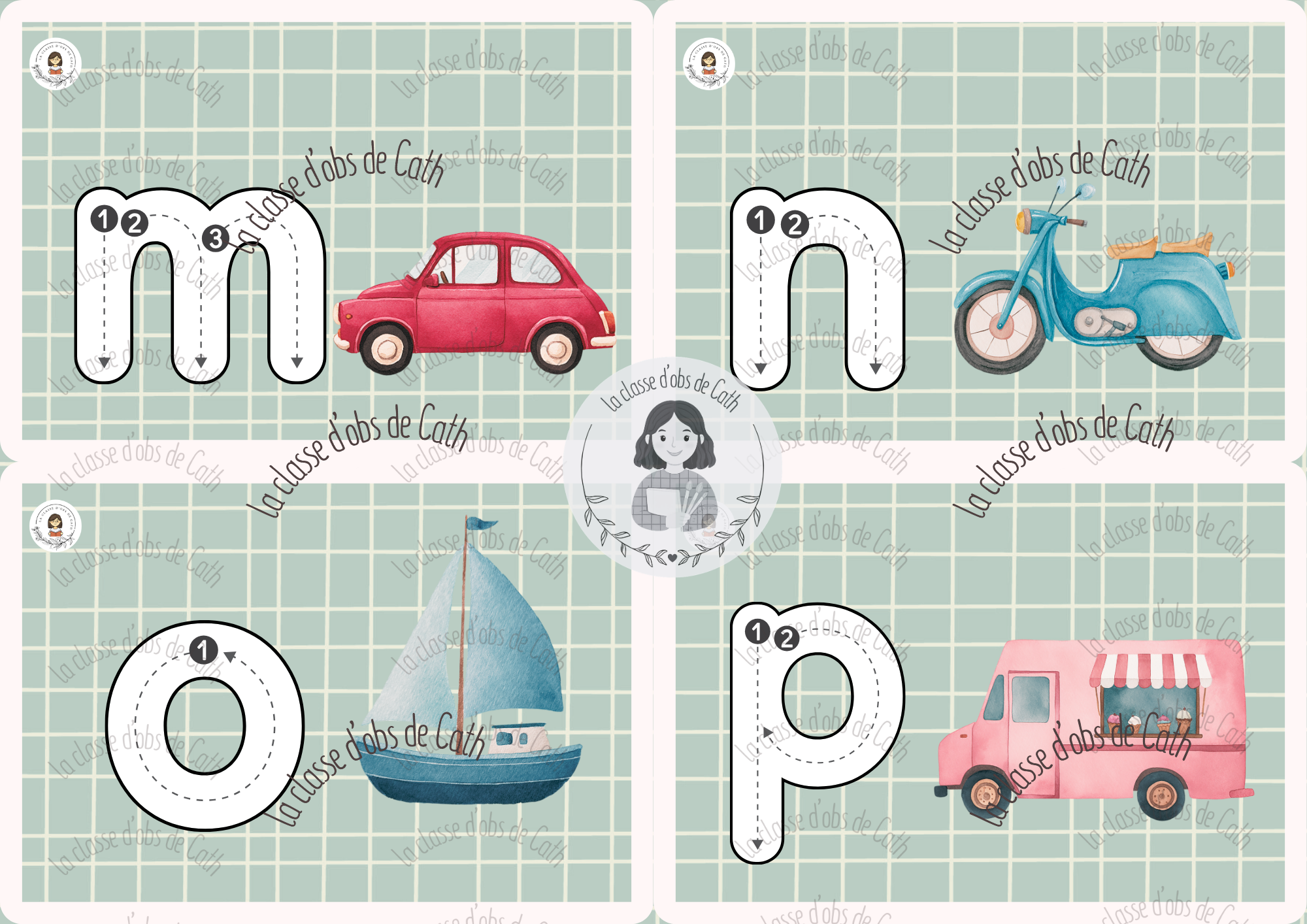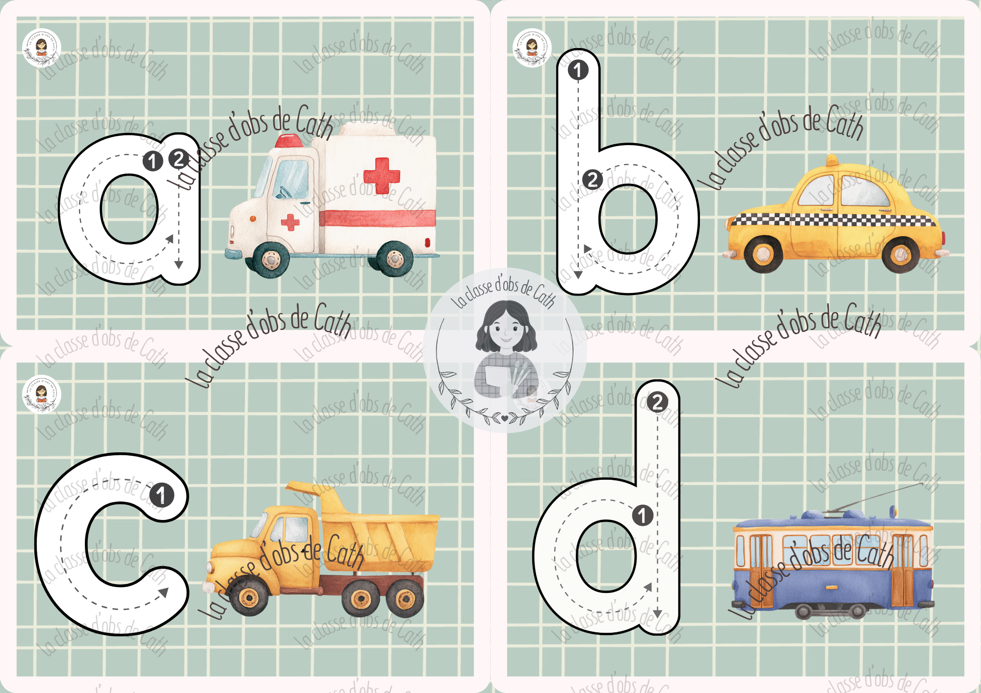 Dossier “Je trace” sur le thème des véhicules pour s’exercer au graphisme, aux gestes de base et au tracé des lettres dans un support visuel clair, ludique et progressif.