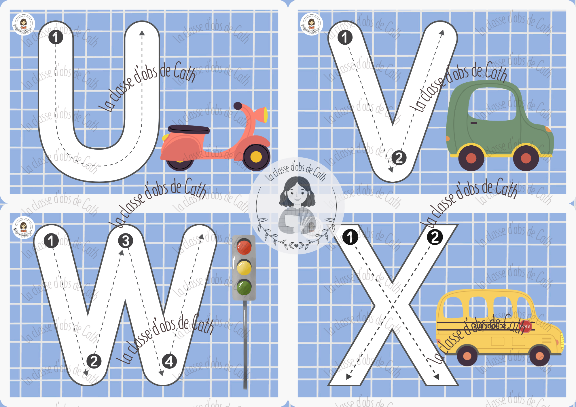 Dossier “Je trace” sur le thème des véhicules pour s’exercer aux gestes graphiques de base et au tracé des lettres dans un univers ludique et motivant. Ce support progressif permet à l’enfant de développer la maîtrise du geste, la motricité fine et les bases nécessaires à l’écriture, à travers des activités variées autour des lignes, des formes et de l’alphabet.