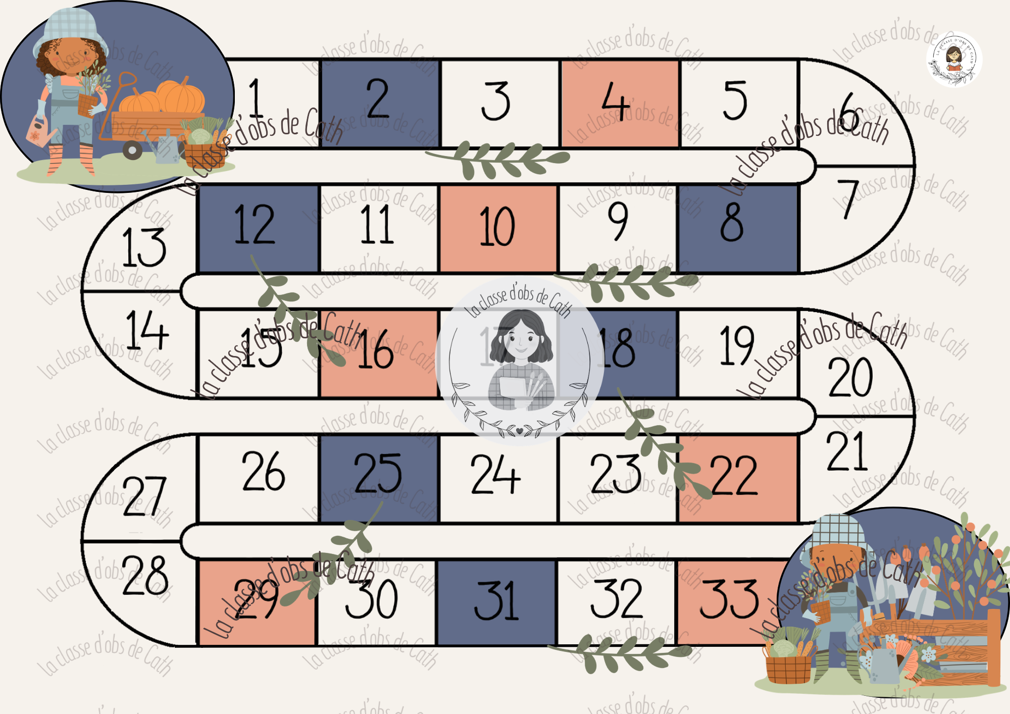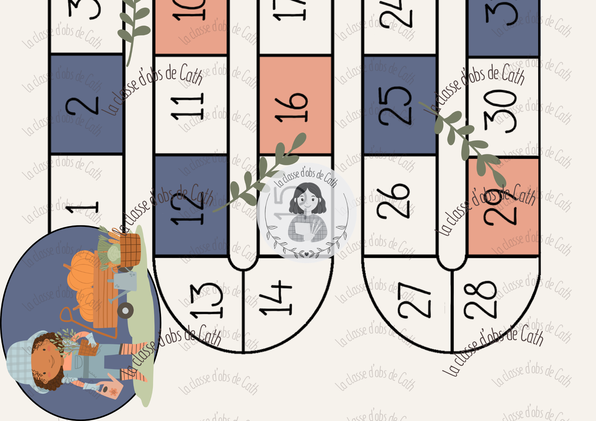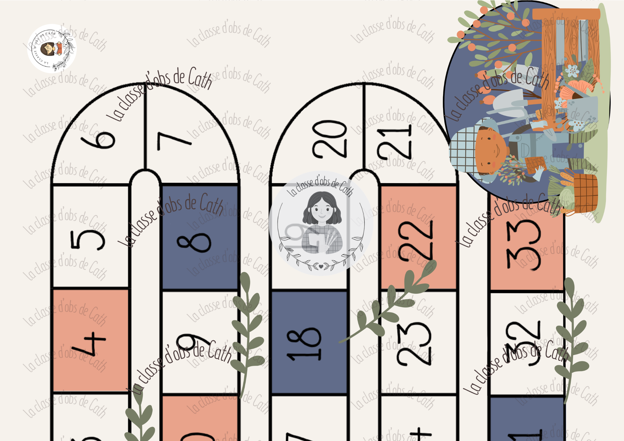 À utiliser en petit groupe, en duo ou en atelier dirigé. Ce jeu est idéal pour apprendre à compter en avançant case par case et à suivre une règle simple. Pour les plus jeunes, il est possible d’accompagner verbalement chaque déplacement. On peut aussi jouer sans les effets spéciaux au départ, puis ajouter progressivement les échelles et les retours en arrière.