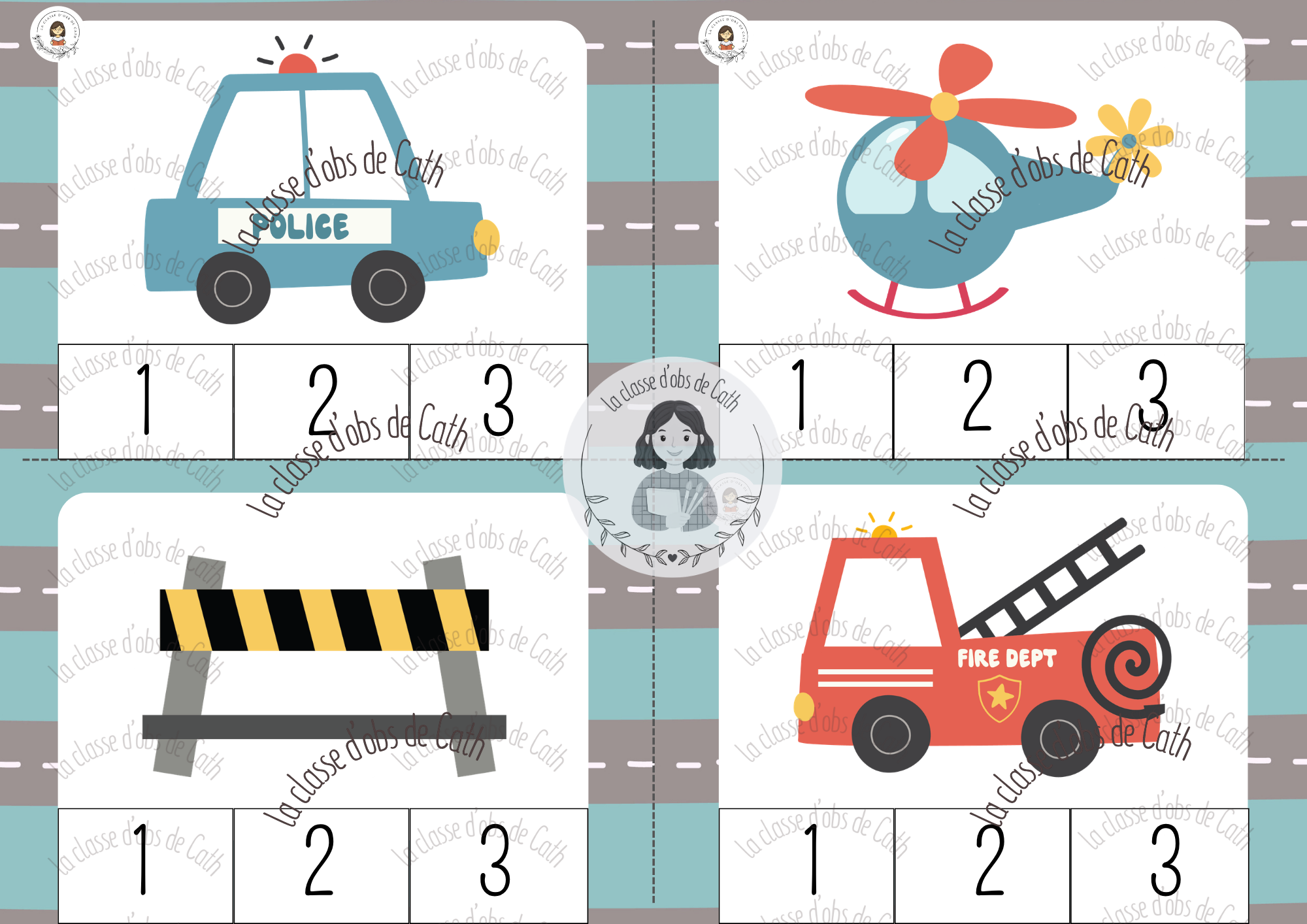 64 cartes à compter thème les véhicules, de 1 à 12. Chaque carte présente une collection de dinosaures à dénombrer avec trois choix de réponse. Idéal pour les ateliers autonomes et la discrimination numérique. Utilisables en Suisse (1H-2H) et en France (PS-MS-GS).